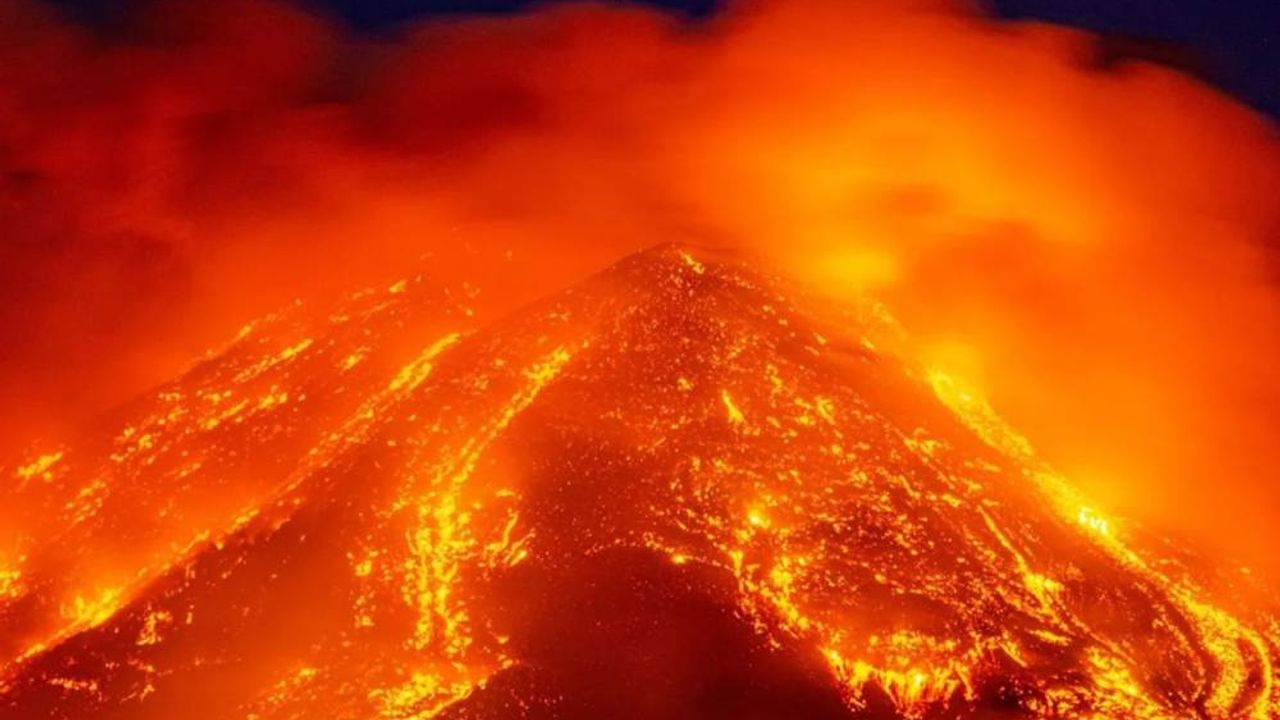 İtalya Ulusal Jeofizik ve Volkanoloji Enstitüsü (INGV) Katanya şubesi, Etna'nın güneydoğusundaki kraterden güçlü bir lav akışı olduğu ve yanardağın püskürttüğü küllerin yaklaşık 4 bin 500 metre yüksekliğe ulaştığını açıkladı.