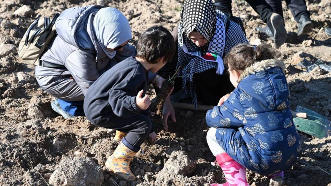Fidan dikim etkinliğinde konuşan Dr. Ayten Canalp, işgal rejiminin saldırıları sonucu şehit olan Gazzelilerin anısına ağaç diktiklerini belirtti.