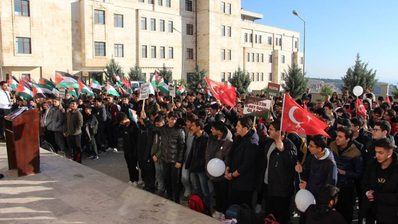 Kadın, çocuk, yaşlı, bebek demeden bir ölüm makinesi edasıyla durmadan katliam yapan siyonist işgal rejimine bir tepki de Mardin'li İmam Hatip Lisesi öğrencilerinden geldi.