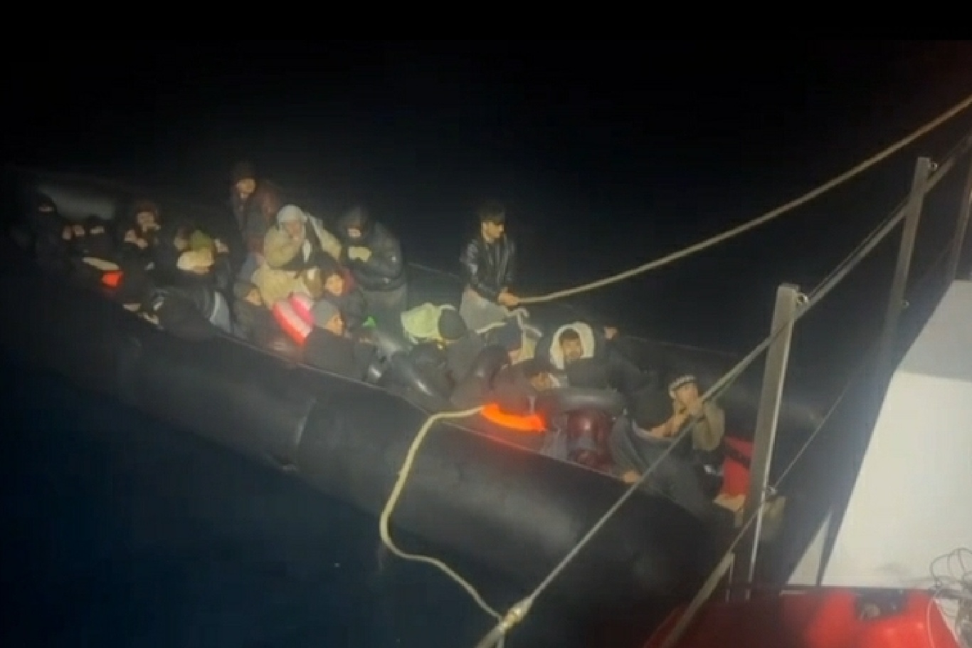 Bunun üzerine bölgeye yönlendirilen Sahil Güvenlik Gemisi, hareket hâlindeki lastik botu durdurdu.