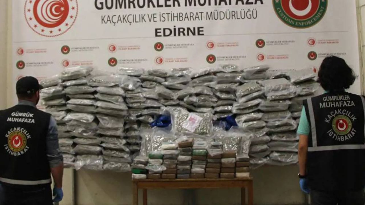 Edirne Cumhuriyet Savcılığı'nın talimatıyla uyuşturucu maddeye el konulurken gerekli yasal işlem başlatıldı. (İLKHA)
