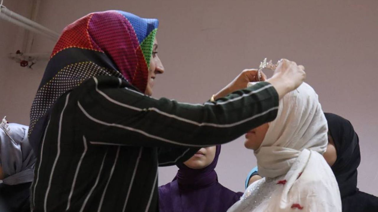 Okulun toplantı salonunda hafızlık eğitimini başarıyla tamamlayan 11 kız hafız için 'Taç giydirme' töreni düzenlendi.